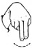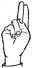 На ћирилици написано ВАЊА ТЕОФИЛОВИЋ састоји се из 14 слова [?]. Исписано ћириличном једноручном азбуком за глувонеме:
